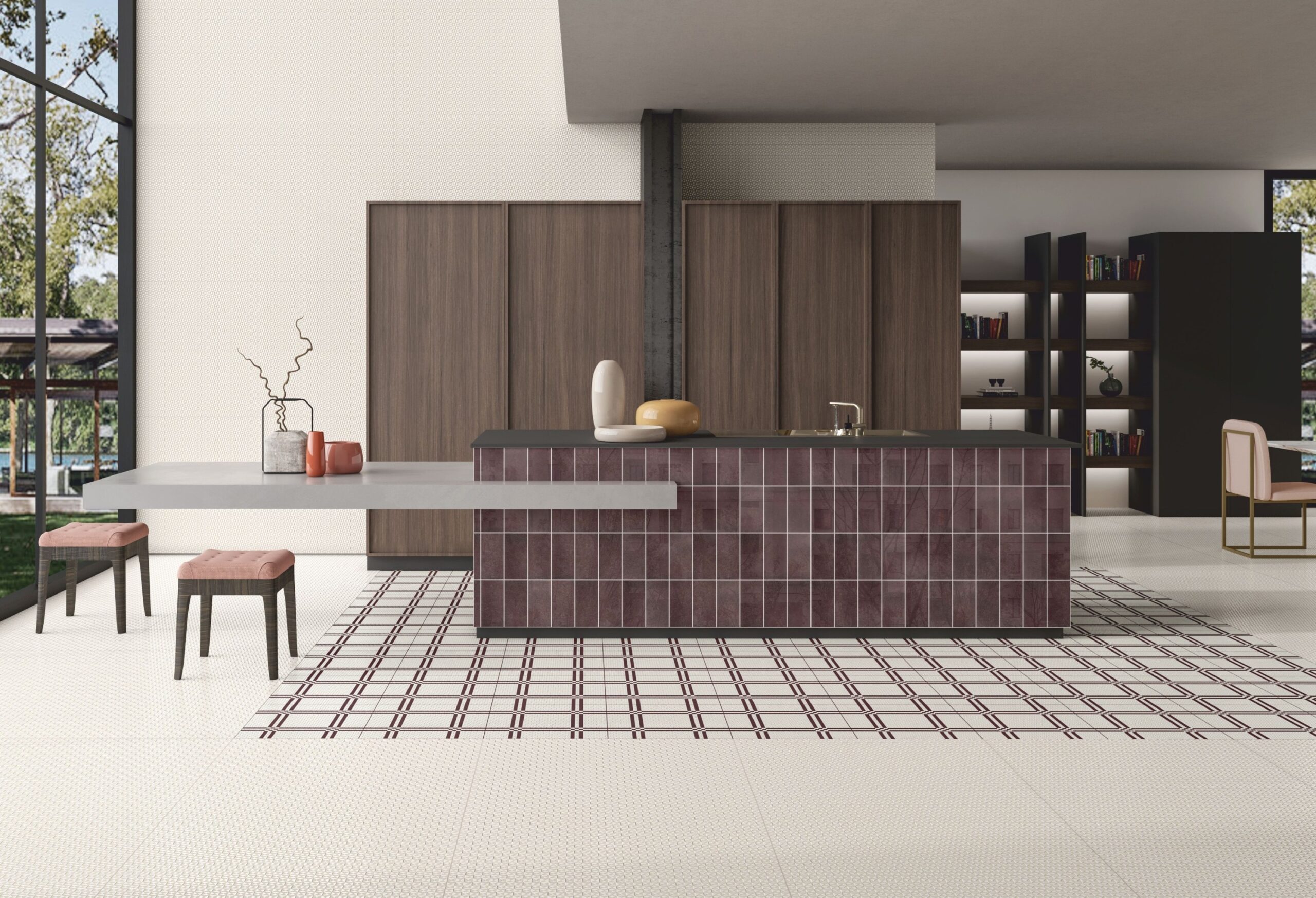 - Digital ceramic tiles with matt surface,random design and high depth punch.