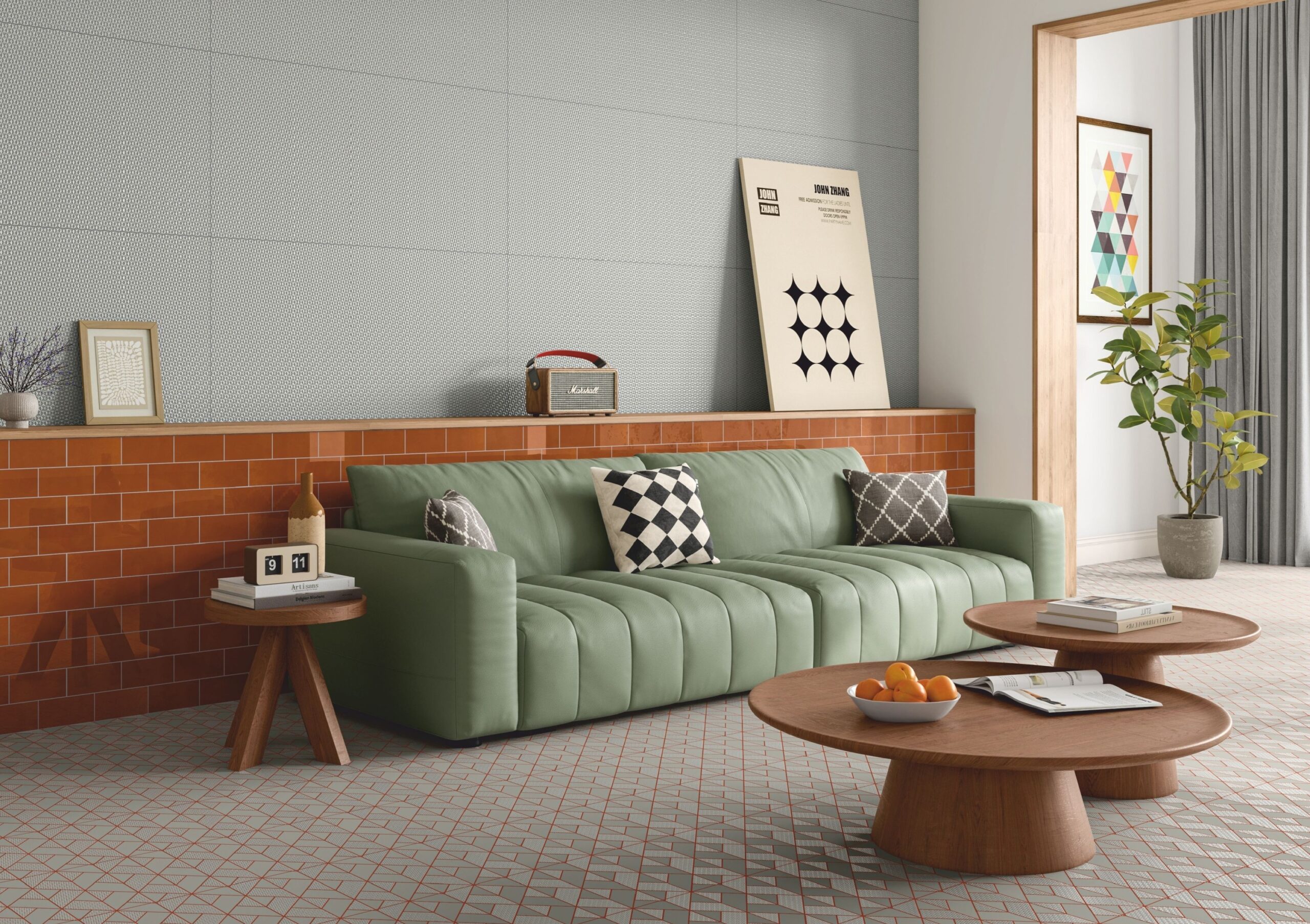 - Digital ceramic tiles having matt with shiny finish and high depth punch.