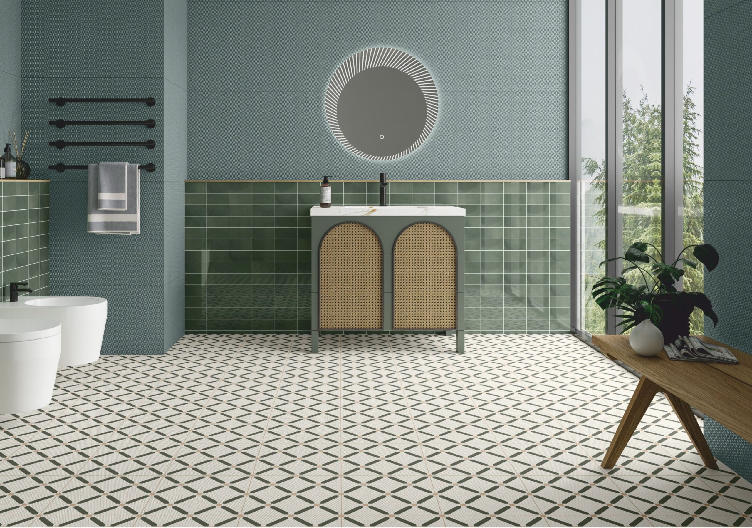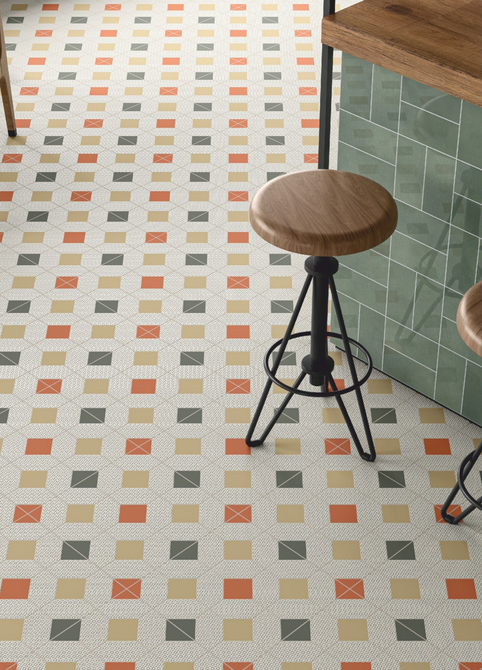 - Ceramic matt finish tile with glue effect.