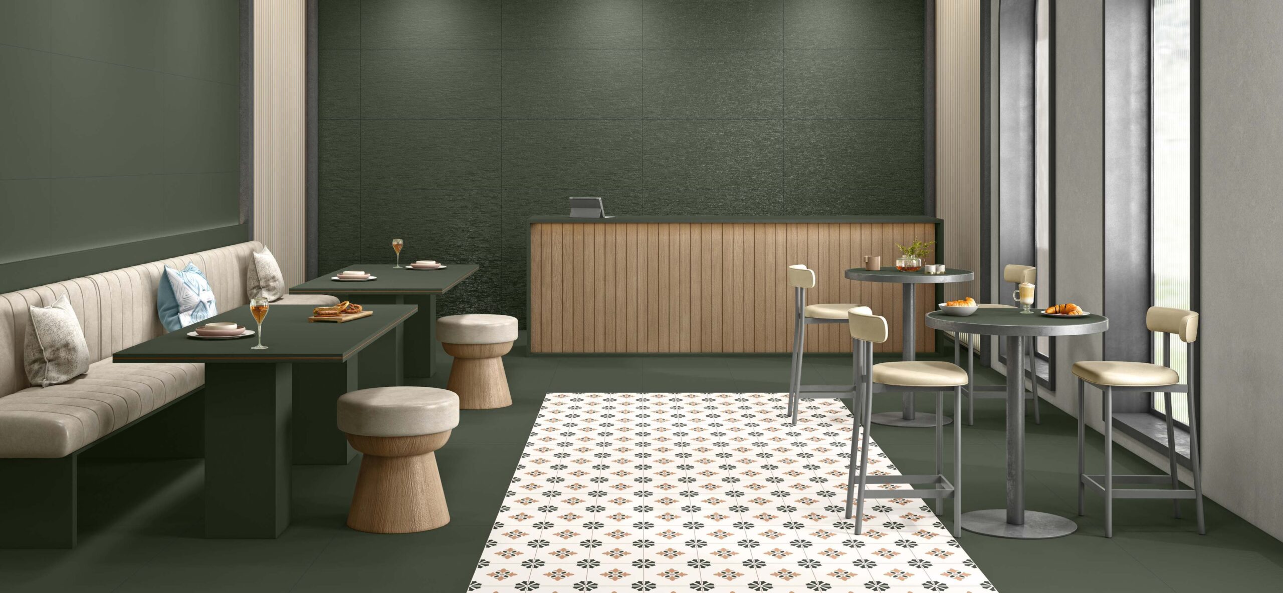 - Vitrified matt surface with slight punch and carving effect.
